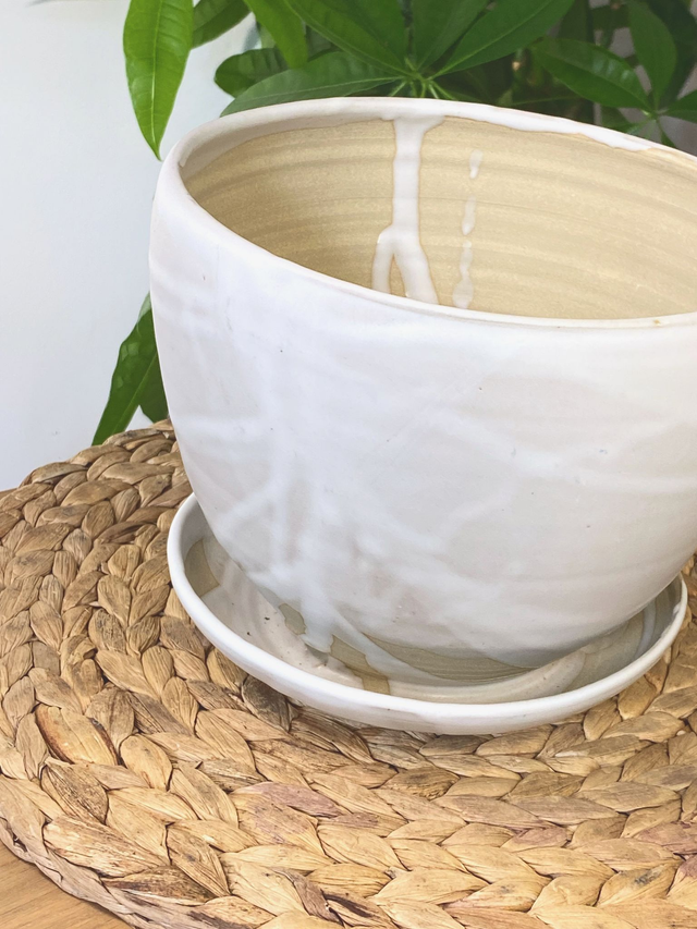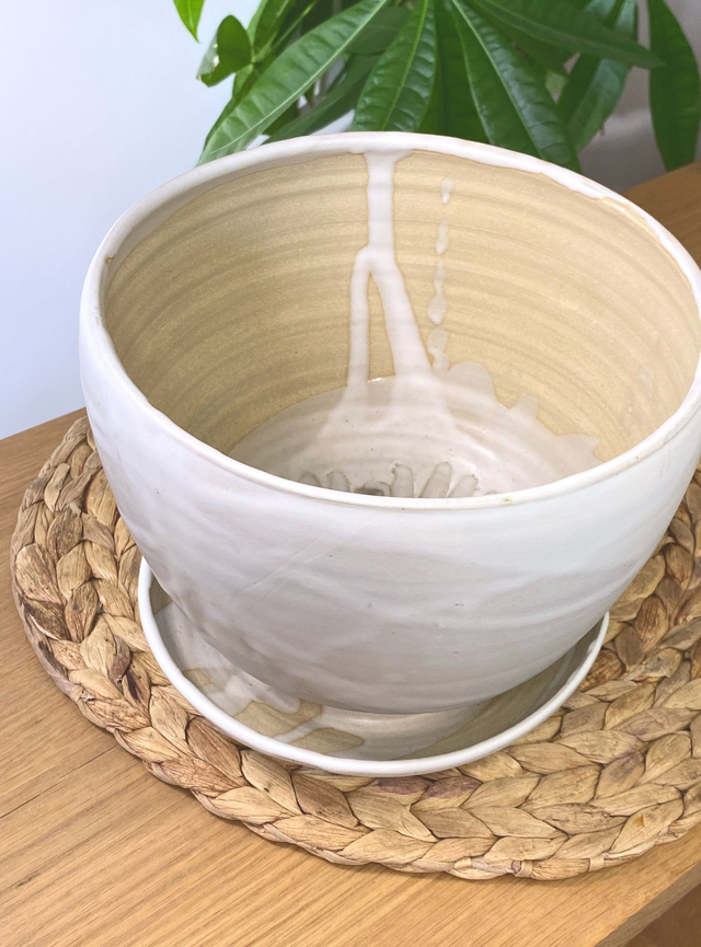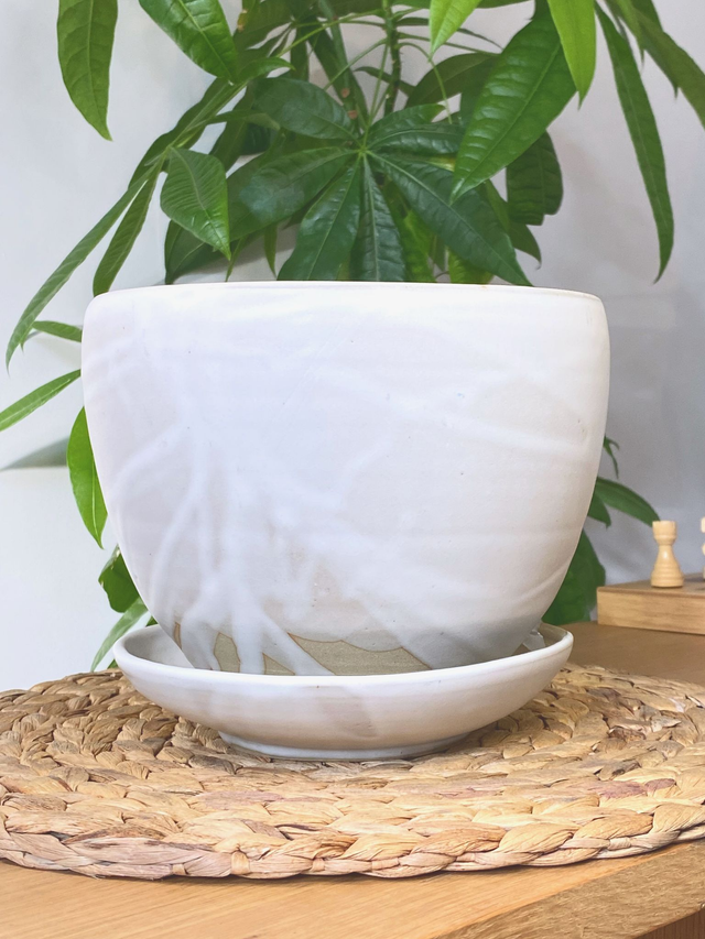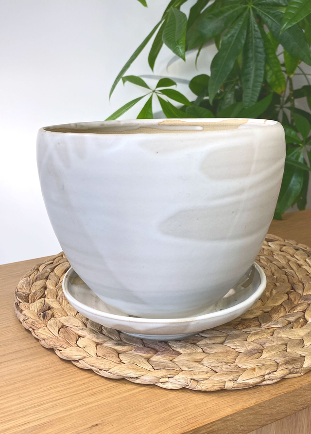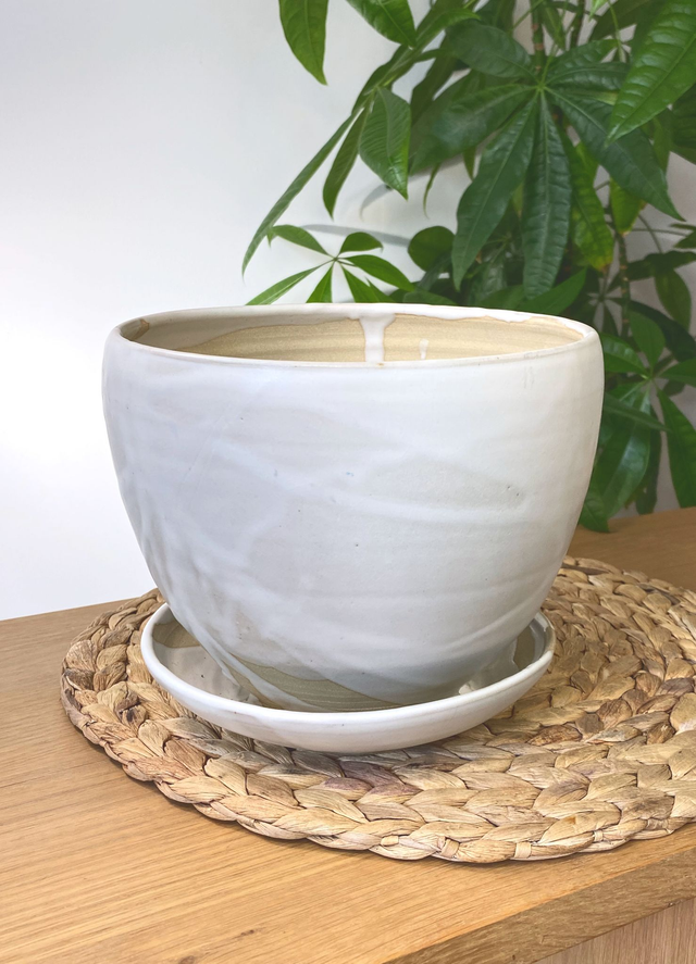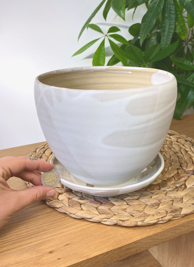 Pot de fleur en grès de Puisaye, émail blanc soyeux,